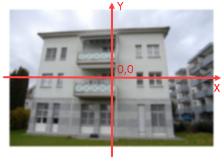 Der 0,0 Punkt des Bildkoordinatensystems ist genau in der Bildmitte: