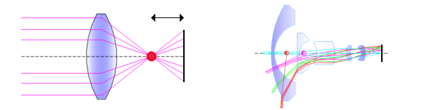 Im Brennpunkt bündeln sich alle Lichtstrahlen. Viele Objektivtypen haben 2 Kammerkonstanten, weil sich die Lichtstrahlen auf einer Linie bündeln, die Kammerkonstanten sind dann der vordere und hintere Punkt dieser Linie